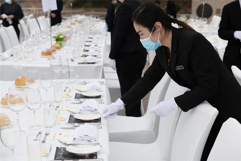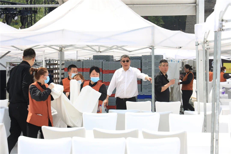5ÔÂ22ÈÕÉÏÎçÑÞÑô¸ßÕÕ£¬°Ų́½øÐÐÖУ¬ÁÒÈÕÏÂÑç»áͬÊ»Ӻ¹ÈçÓê¡£Ò»ÕÅÕŰ×É«×ÀÒÎÅųɷ½Õó£¬Ò»Èç½ÓÊܼìÔİ㣬ÁÐÓÚ³¤³Ç½ÅÏ£¬ÔÚεÀ¶Ìì¿ÕºÍ´ÐÓôȺɽµÄÓ³³ÄÏ£¬ÆÄΪ׳¹Û¡£¼´±ãÓгä·Ö×¼±¸£¬ÏÖ³¡Í»·¢×´¿öÈÔÊDzã³ö²»Çî¡£ÏÂÎç4ʱÐí£¬·çÆðÔÆÓ¿£¬²Í×ÀÉϰںõIJ£Á§±Ò¡Ò¡Óû×¹¡£²ÍÒû²¿¸±×ܼàÕÅÌÎÂíÉÏÖ¸»Ó´ó¼Ò½«±×ÓÇãб´î·Å£¬±ÜÃâ±»·ç´µÂ䣻½ô½Ó×ÅÁãÐǵÄÓêµãËæ·ç¶øÖÁ£¬Ìáǰ±¸ºÃµÄÉ»²¼ÕýºÃÅÉÉÏÁËÓô¦¡£Õýʽ¿ª³¡Ç°£¬È«ÌåÔ±¹¤ÓÖÒÔ·É¿ìµÄËٶȽ«ËüÃÇ·Å»ØÔ룬ץ̀ȫ²¿°´ÕÕ±ê×¼°Ú·Å¡£