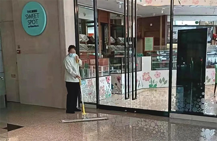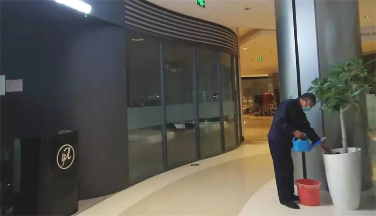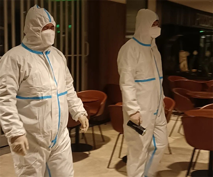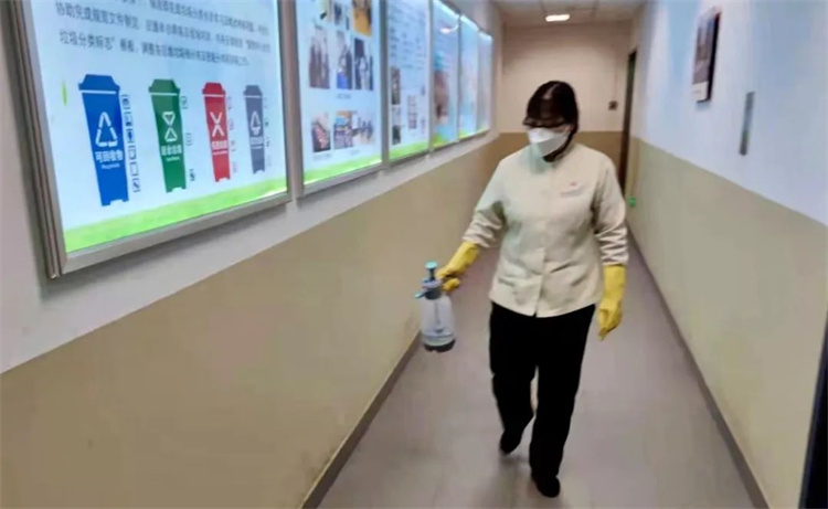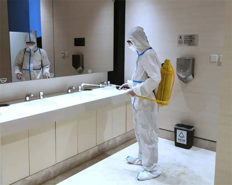 在疫情出现后,根据中心防疫工作的统一部署,保洁部留守的三十多名员工,负责在闭环内对重点防控区域进行消杀,不分昼夜地穿梭于太阳成城集团,用他们的话说,穿上防护服,我们就是抗疫战士。