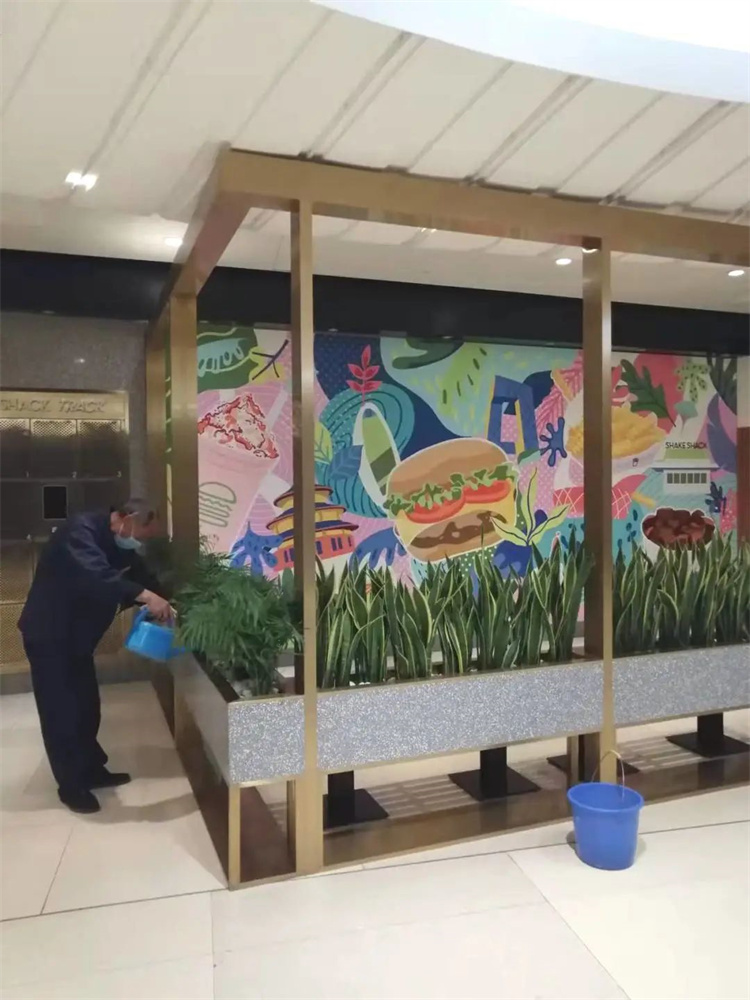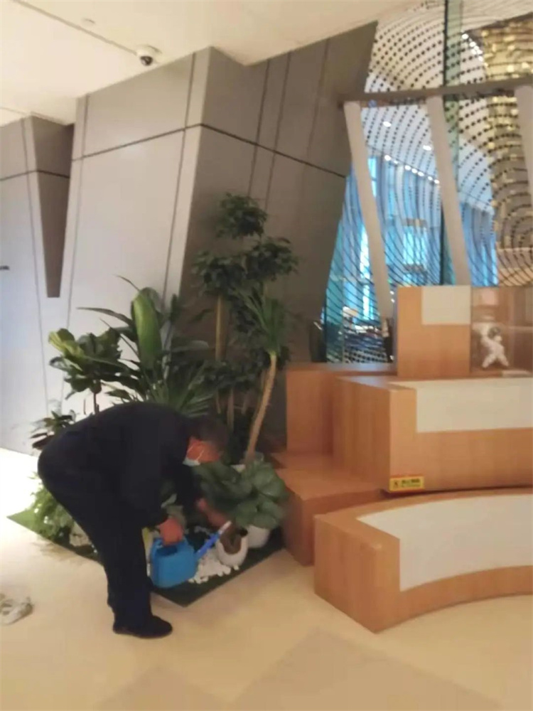 封控期间,我们的绿化服务仍在继续。写字楼和商城租户居家办公,租区内的绿植不能无人养护,国贸物业部、项目部立即协调绿化员工实施临管期间的绿植养护预案,让太阳成城集团写字楼、商场、酒店、公区的绿植一棵也不能少。