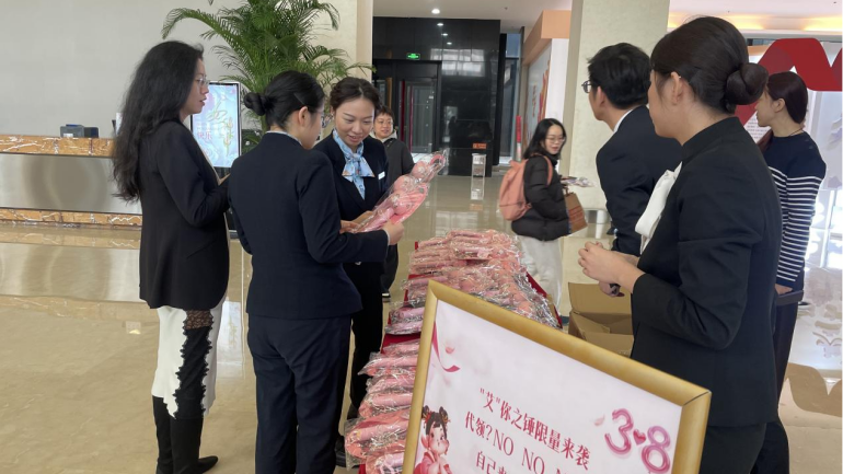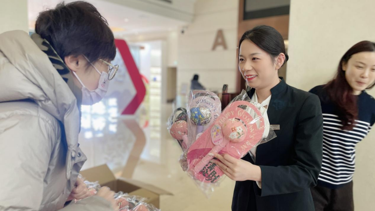 大家保险大厦项目精心筹备并开展了一场温馨而贴心的“女神节”特别活动,为每一位“大家女神”送去专属的节日温暖。3月7日,大家保险项目员工早早便准备就绪,将精心挑选的800份节日礼品整齐摆放,等待着“女神们”的到来,礼品包含精美花束与养生艾草锤,每一份都承载着对“女神们”满满的祝福与关爱。随着“女神们”陆续走进大厦,项目员工热情地送上礼品并致以真挚的节日问候。“女神们”惊喜不已,脸上洋溢着幸福的笑容,纷纷对此次活动表示赞赏,对国贸物业的用心与关怀表示感谢。