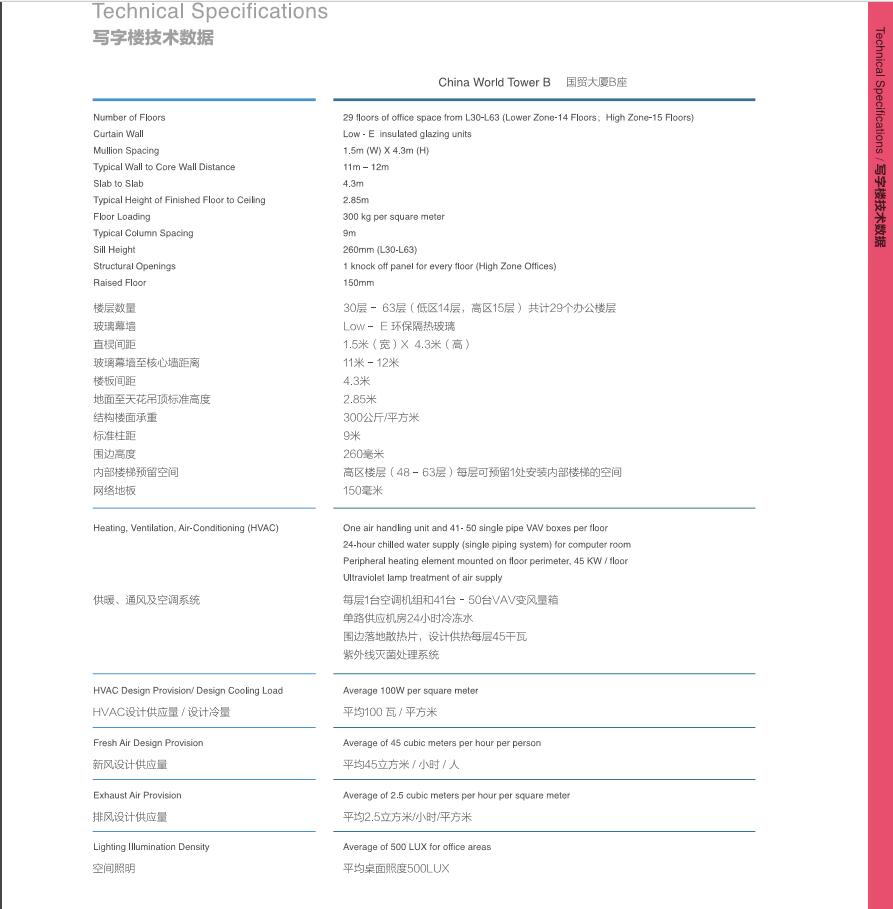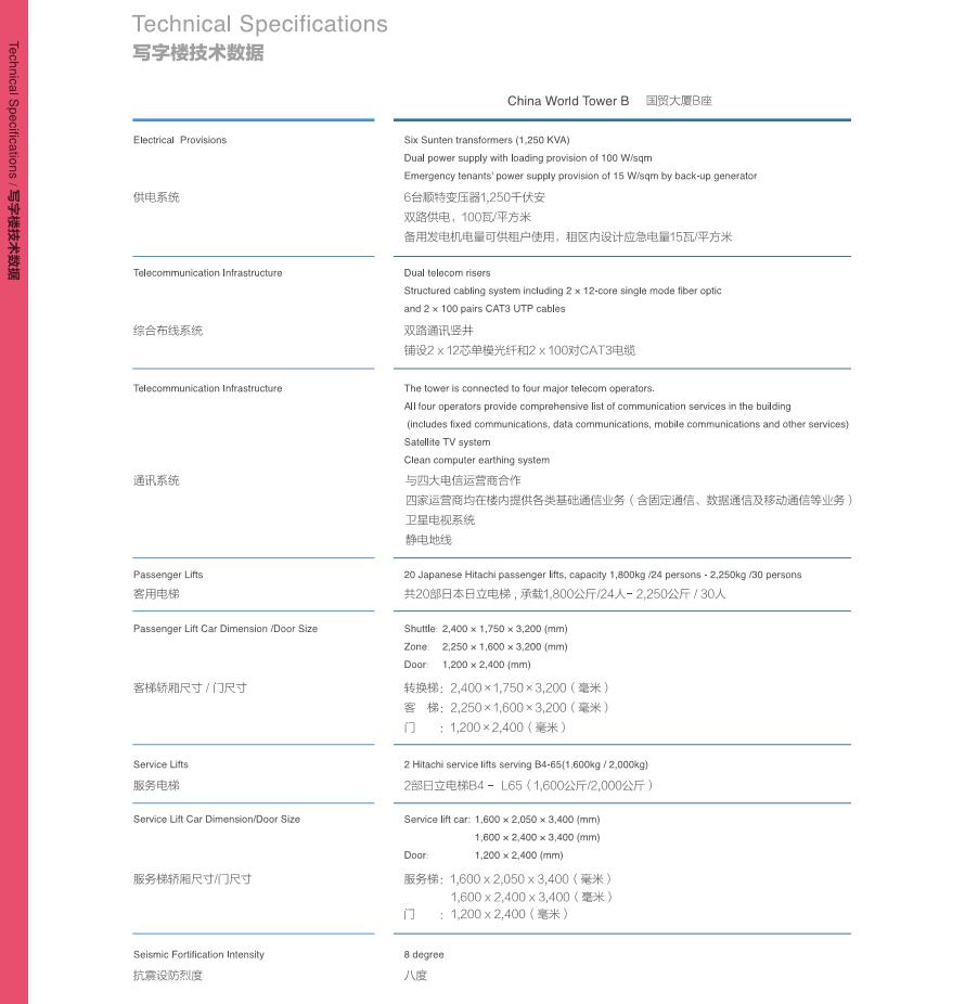 China World Tower A and B are equipped with 4-pipe variable-air-volume (VAV) system including ultra-violet air purification technology to provide year-round cooling and heating comfort for our tenants. Fresh air quality is ensured by direct fresh air intake and forced exhaust air system in all office buildings. Dedicated 24 hours chilled water is provided for tenants¡¯computer server rooms.